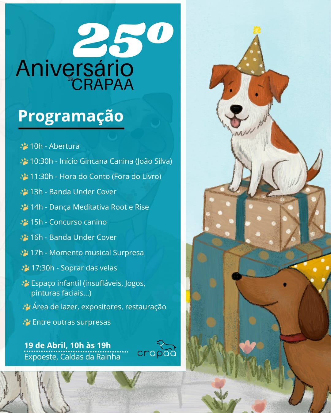 A CRAPAA celebra o seu 25º Aniversário e queremos que faças parte desta festa inesquecível. Preparámos um dia cheio de animação para toda a família (incluindo os de quatro patas, claro!).