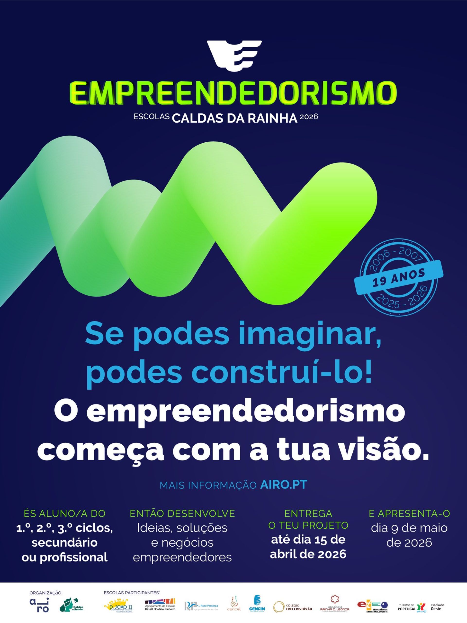 As inscrições para o Concurso de Empreendedorismo nas Escolas - Caldas da Rainha 2025/2026 estão quase a terminar. Tens uma ideia que pode mudar o mundo, a nossa Região Oeste ou a nossa Cidade? Esta é a oportunidade de a tirar do papel!